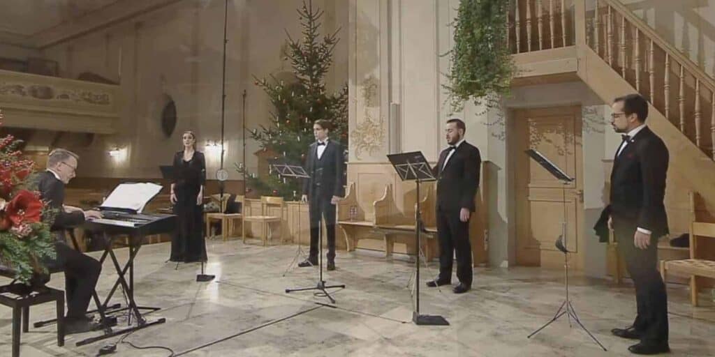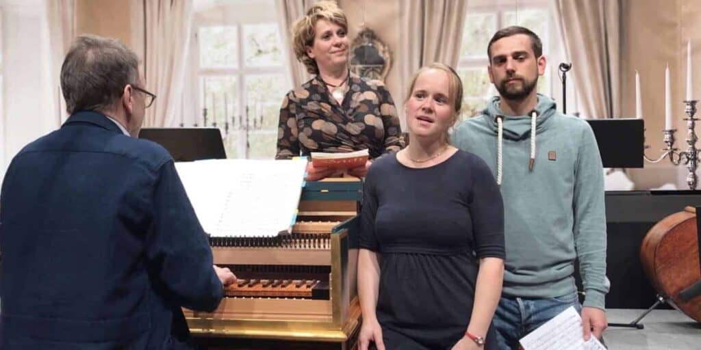 Los alumnos estudian y cantan el coral final de la cantata BWV 25 "Es ist nicht Gesundes an meinem Leibe"…